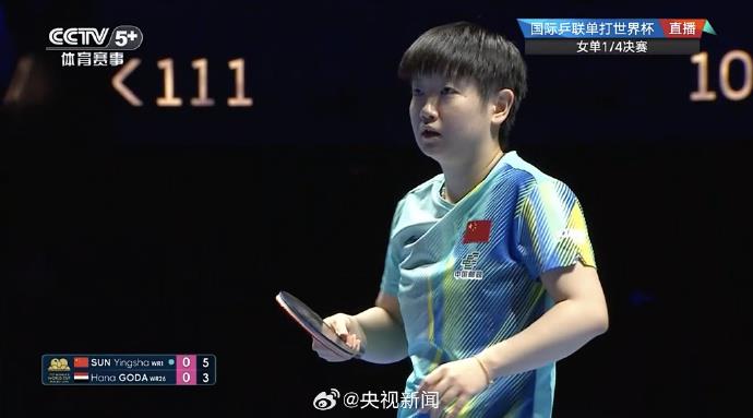 2026澳门乒乓球单打世界杯女单1/4决赛,孙颖莎战胜对手汉娜·高达,成功晋级四强。 (央视新闻)