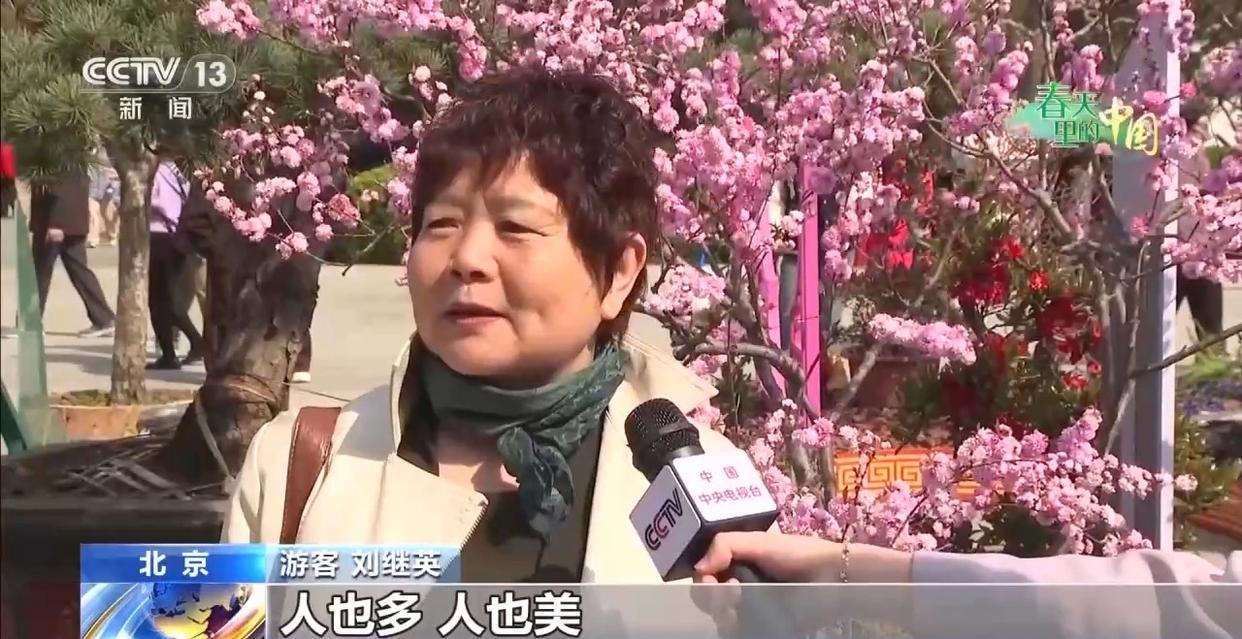 游客 刘继英:特漂亮,人也多,人也美。这春天就是好,大家都出来欣赏美景,很高兴、很快乐。