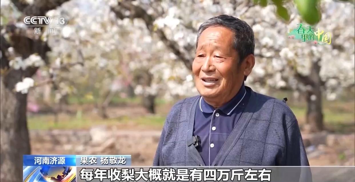 眼下,正值梨树授粉关键期,果农们抢抓农时,在花海中忙碌穿梭,74岁的杨敬龙从十几岁起就开始种梨,至今已有整整60个年头。