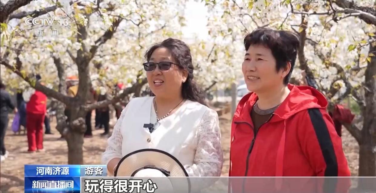游客:梨花很漂亮,我们在这里拍拍视频,拍拍照片,玩得很开心。