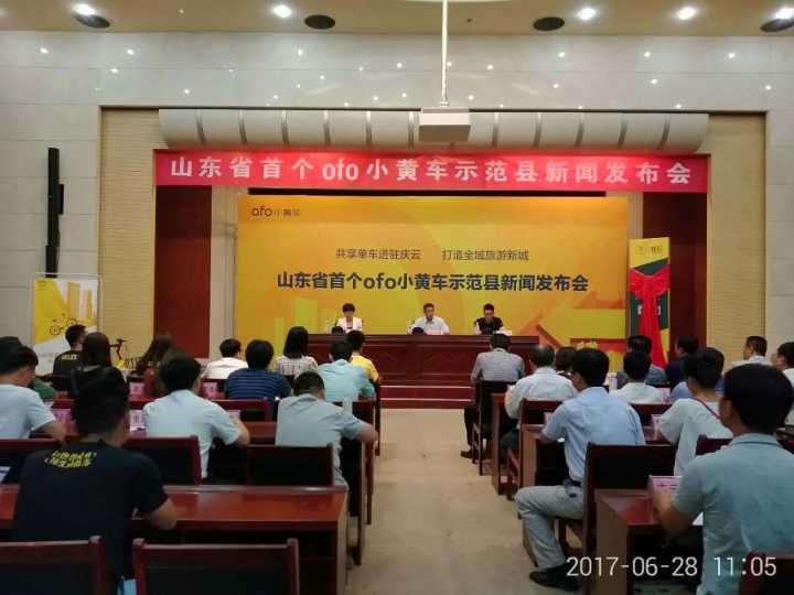 6月28日,庆云县政府召开新闻发布会,宣布与ofo小黄车开展战略合作,倾力打造山东省首个ofo小黄车示范县。