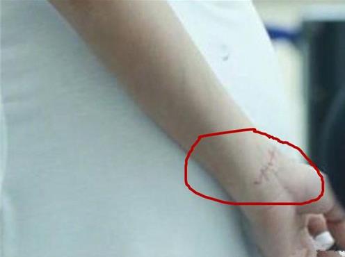 而仔细观看照片,在白百何的手腕上有一道好长的口子,不会是割腕留下的疤痕吧,感觉确实是割腕后缝针后留的伤疤,看到这里心不由得轴了一下,每位当母亲的都不容易。
