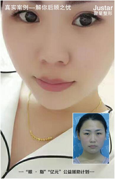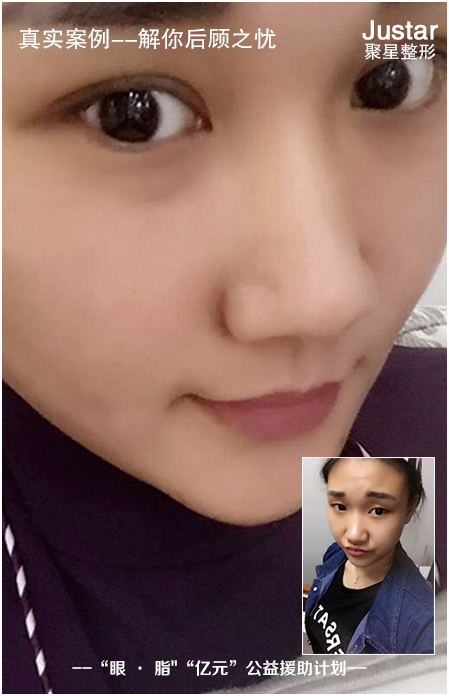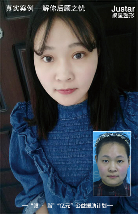 2017年4月份,在聚星举行的第二届公益活动中,参加了聚星的免费整形活动,经过手术,她彻底告别了双眼皮贴。