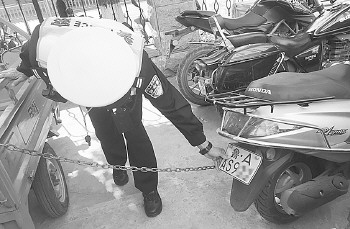 交警查扣违法摩托车,假牌车占比四分之一。